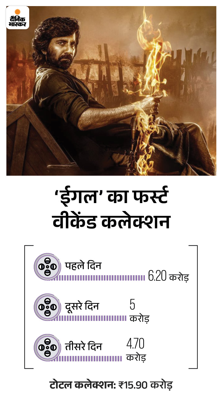 वहीं रवि तेजा स्टारर ‘ईगल’ ने बॉक्स ऑफिस कलेक्श के मामले में ‘लाल सलाम’ को पीछे छोड़ दिया है। फिल्म ने तीन दिनों में लगभग 16 करोड़ रुपए का बिजनेस कर लिया है।