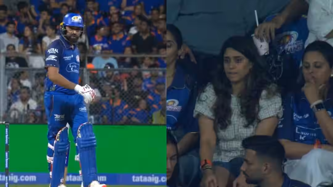 Ritika Sajdeh Reaction Rohit Sharma Retired Hurt: रोहित शर्मा बिना आउट हुए ड्रेसिंग रूम में वापस लौट गए. ‘हिटमैन’ की हालत देख उनके फैंस की चिंता बढ़ गई है. रॉयल चैलेंजर्स बेंगलुरू के खिलाफ मैच में रोहित 13 गेंद में 19 रन बनाकर खेल रहे थे, तभी रिटायर्ड हर्ट होकर उन्हें ड्रेसिंग रूम में वापस लौटना पड़ा. दरअसल रोहित को हैमस्ट्रिंग में खिंचाव के कारण दर्द होने लगा था, जिसकी वजह से उन्हें वापस लौटना पड़ा. इसपर उनकी वाइफ रीतिका सजदेह का रिएक्शन भी वायरल हो रहा है.